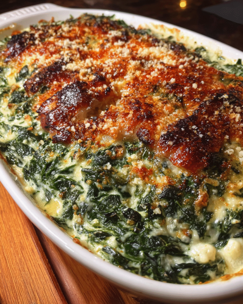 There is something irresistible about warm, creamy vegetables fresh from the oven. This dish takes spinach—often overlooked—and turns it into a luxurious, spoonable creation that feels both nourishing and indulgent. The texture is smooth and rich, yet balanced enough to avoid heaviness.