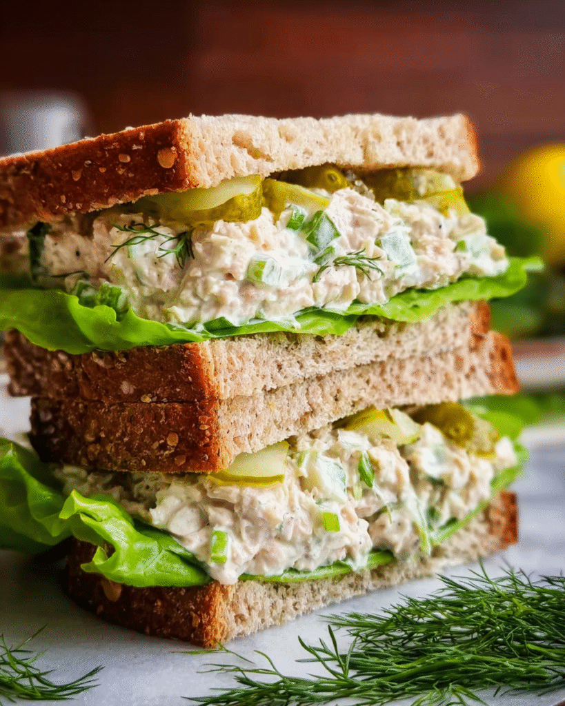 The beauty of this dish lies in its simplicity. Creamy mayonnaise, crisp vegetables, and tender tuna blend into a rich filling that tastes both fresh and indulgent. When layered between slices of soft bread with butter lettuce, the result is a sandwich that feels both nostalgic and surprisingly elegant. With just a handful of ingredients and no cooking required, this easy creation proves that simple food can still be incredibly delicious.